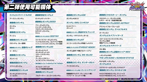 第1弾と第2弾で使用できる機体は異なり,利用可能なゲームモードは「オンライン対戦フリーマッチ」「オンライン対戦の店内優先マッチ」となっている。また,Bandai Namco PassportなどアミューズメントICカードを利用したプレイや,ガンダムVS.モバイル,トライアドバトル(対戦のマッチング待ちCPU戦は除く),トレーニングといった機能は利用できない。トライアル実施店舗については,公式サイト(リンク)で確認してほしい。