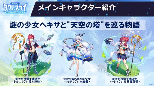 トーレ(CV:石見舞菜香)のどちらかを選び,個性豊かな仲間達とパーティを結成して,空から落ちてきた謎の少女・