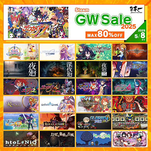 日本一ソフトウェアは2025年4月25日(金)〜5月8日(木)まで、PCゲーム配信プラットフォームSteamにて、日本一ソフトウェアタイトルのセールを開催中です。