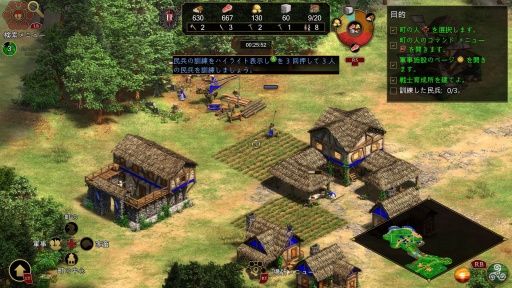 最初に与えられた町の中心付近を斥候で探検しつつ,発見した資源に町の人を割り振っていくのは,AoE2の序盤における楽しみの一つ。だが,中盤以降はゲームに勝利するべく,軍事ユニットの生産や敵文明の攻撃に専念したいところだ。