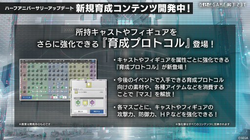 「ギャラクシーフォース(アノード)」「バーチャコップ(アノード)」に加え,新規育成コンテンツやハーフアニバーサリーキャンペーンの内容も発表された。プレイヤーには見逃せない情報が盛りだくさんなので,以下のスライドや配信のアーカイブをチェックしておこう。