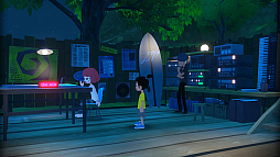追加コンテンツでは、よもぎ町から見える洋上の新エリア「夕焼け島」が実装。険しい地形と豊かな自然が特徴の夕焼け島にはラジオ局の送信アンテナがあるほか、かつての住居跡や洞窟といった気になるポイントが点在しています。新たに展開する物語には、ラジオ局を運営する「DJ 低気圧」や、まぼろしサーカス団の演出家「トビヤマさん」が登場。ほかにも新規の昆虫や魚、一部キャラクターの追加エピソードなど、夏休みを彩る様々な要素が新たに収録されています。
