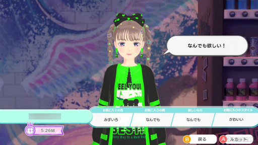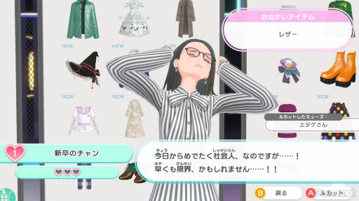 こうして手に入れたアイテムを使って,ミューズを自由にコーディネートしていく。コーディネートに堅苦しい決まりはない。イヴに「間違ったコーデ」は存在せず,すべてのミューズ,すべてのコーデが尊重されるのだ。