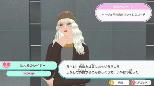 彼らとの交流は,基本的には「ルカット」と呼ばれる,コーディネートの提案で行う。NPCであるキャラクターミューズと会話をしたり,ルカットをしたりすると,彼らと少しずつ仲良くなっていく。すると仲良しレベルがアップし,別のキャラクターミューズを紹介してくれたり,新たなミューズエディットの素材をくれたりなど,さまざまなイベントが発生するのだ。