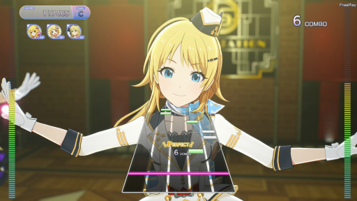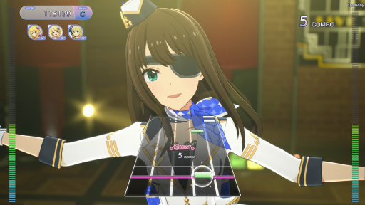 5ボタンが横並びになった鍵盤に関しても,「アイマス」ファンとしては歓迎したいポイント。「デレステ」(アイドルマスター シンデレラガールズ スターライトステージ)とほぼ同じような感覚でノーツを押していけるようになったため,JAEPO2023時よりもプレイしやすいと感じた。