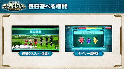 ダンジョンはマルチプレイ専用だが,ちょっとした謎解きを楽しめる「デイリー謎解き」や,モンストを派遣する「探検クエスト」といったソロ用のコンテンツも存在し,強化素材などを手に入れることができるという。また課金要素としては,モンストや武器のガチャ,各種アイテムのパック,限定コスチュームが手に入るシーズンパスなどが用意される予定だ。