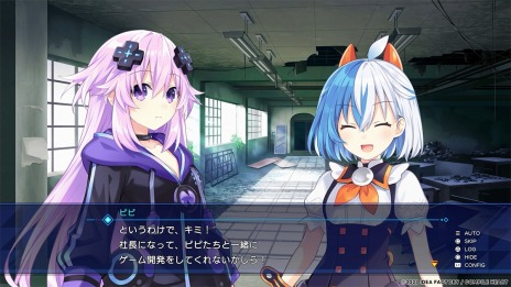 本作では新たなシステムとして「経営パート」が追加。クリエイターを雇い、ディスク開発を行いながら、自社ビルを拡張していくことができます。「大人ネプテューヌ」「失敗女神」とともに、大企業を目指しましょう。