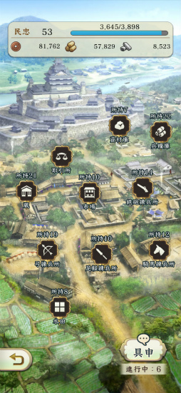 そうして歩いて移動,武将の育成,目的地で合戦,取った領地の内政が,基本のゲームサイクルとなります。