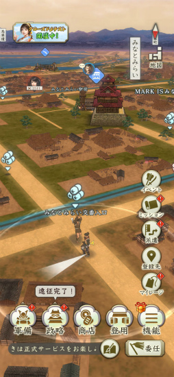 プレイヤーはスマートフォン画面に映る,現実の地図情報を反映した戦国時代風のマップを歩き,領地を広げ,武将と出会い,内政で国力を高めるなどの遊びのサイクルで日の本の統一を目指します。