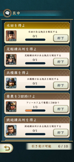 武将たちは部隊に編制して合戦,内政施設に配置,遠隔地へ遠征など,ゲーム内でいろいろな役割を果たします。基本は「登用」(ガチャ)か,「交流」で友好度を高めると配下にできます。