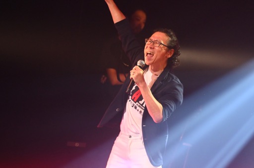 「近未来編メドレー −流動−」は「Wait for Truth」「PSYCHOで夜露死苦!!」の2曲編成。場内もこの後に第二部が続くとは考えられないほどにヒートアップする。そして,怒濤のような演奏から一転して静まりかえった場内に「ざけんなよ……そんなカッコにならなくてもな……一つにはなれんだよ! なあ……そうだろ,松ッ!!」と,アキラの魂の叫びが響き渡り,「GO! GO! ブリキ大王!!」がスタート。もちろん,リメイク版同様に影山氏のボーカル入りで,3番までの熱唱だ。