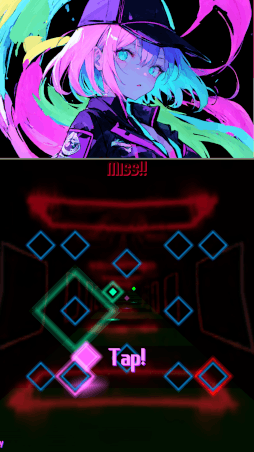通常のリズムゲームとは違い、立体的なノート配置やトリックノート(ジャンプノート、落下ノート、高速ノート等)があるので、新しいスリルを感じられます。さらに、ユーザーが自分で譜面を作成してアップロードすることもできます。他のユーザーの作成した譜面もダウンロードして、いろいろな譜面で遊んでみてください。