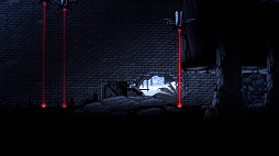 なるほど,物陰に隠れながら兵士をやり過ごせばいいんだな。ちょろいちょろい……と思っていたら,レーザーで敵を検知する機械が登場。レーザーに触れている間に動くとバレてしまうため,レーザーが通過するまではジッとしている必要がある。レーザーと往復する兵士との合わせ技もあり,徐々に難しくなってくるのだ。