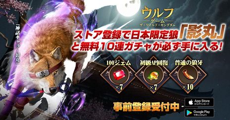 App StoreとGoogle Playで事前登録を受付けております。事前登録すれば日本限定の神話キャラ「影丸」と無料の10連ガチャを手に入れることができます!