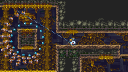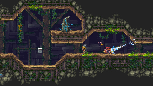 なお,筆者のアクションゲームスキルが仮に「中の下」ぐらいだとすると(たぶん実際にそれぐらい),本作は「死にゲー」と言っていい難度になっている。たたし,ステージ中のチェックポイントは多く,ソーがやられてしまった場合の復帰も早い。トライ&エラーで“死ぬ”緊張感,パズルが解けた達成感,そして解いたあとのソーのアクションの快感を楽しめるゲームと言えるだろう。