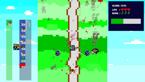 自機や味方のドット絵は音楽に合わせて動くので,攻撃の合間に鑑賞するのも楽しいとのこと。