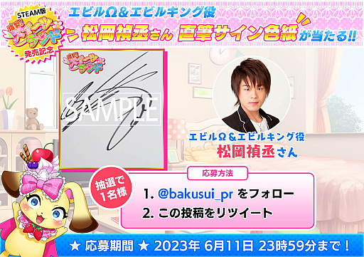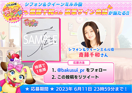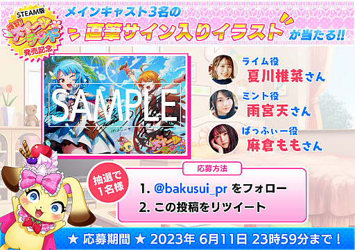 さらに!Steamでの発売を記念し「出演声優のサイン入りイラストなどが当たる!Steam版発売記念フォロー&リツイートキャンペーン」を開催しておりますので、奮ってご応募下さい。