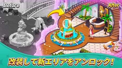 ロビー、カフェ、テラスなど、さまざまな場所を改装して、あなたの才能を発揮してください!たくさんの家具や装飾品からインスピレーションを得て、あなたの創造力を発揮し、夢のリゾートをデザインしてください!