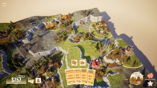 「安価な橋(橋の建設コストを削減する)」のカードなど、ゲームプレイを多様化するために複数のカードが用意されています。