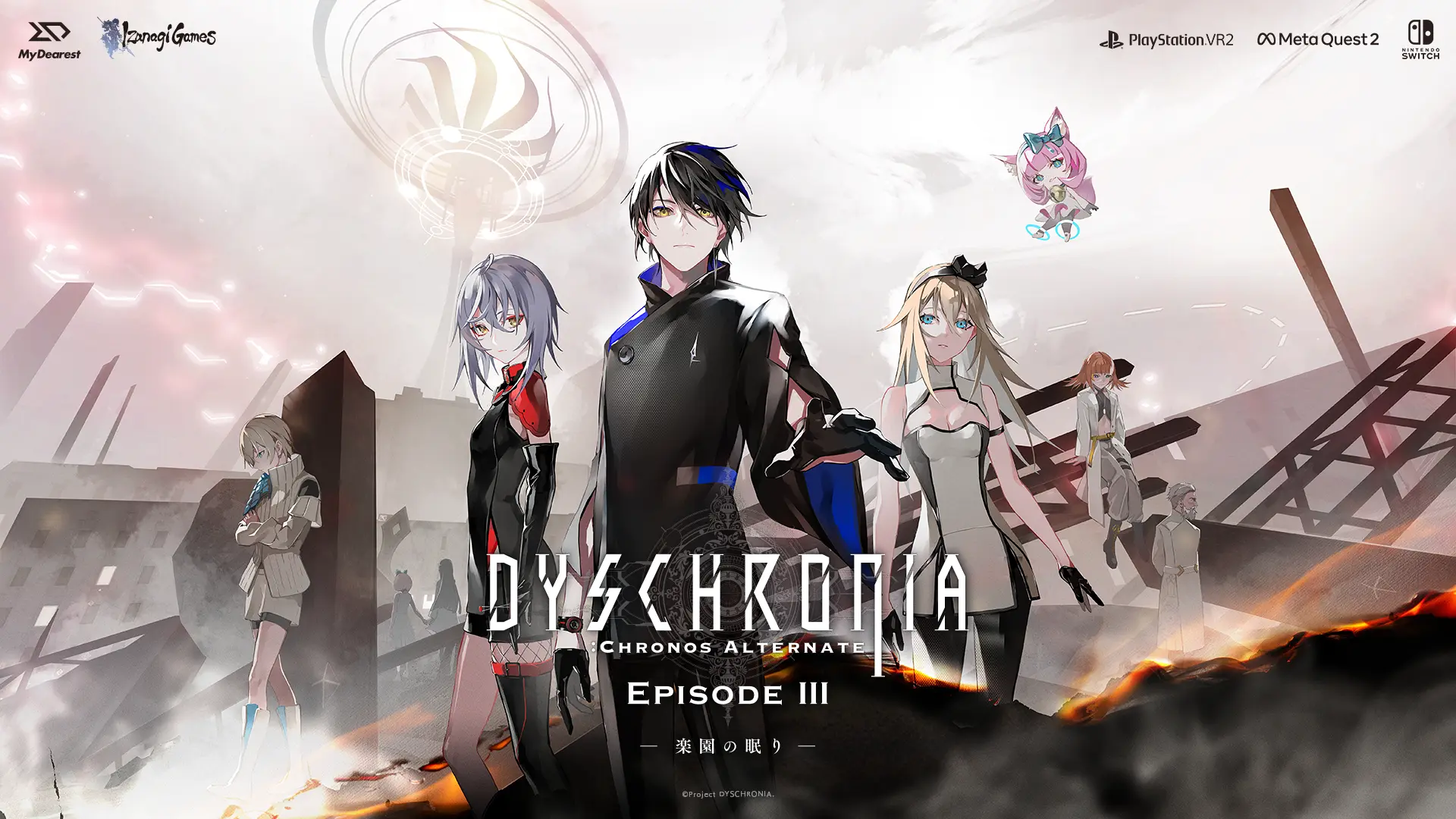 MyDearestのVR用ADV「DYSCHRONIA: Chronos Alternate」の完結編「Episode III -楽園の眠り-」が,2023年7月14日に発売となることが明らかとなった。価格はMeta Quest 2版が1490円(税込),PlayStation VR2版が1760円(税込)となっている。