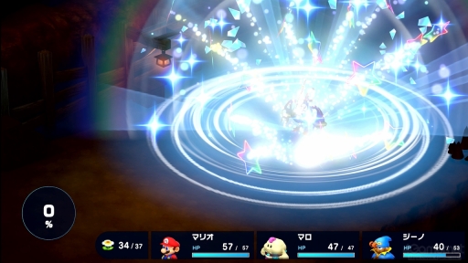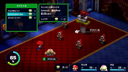 その名のとおり,RPGのコマンドバトル中に,まるでマリオのアクションを楽しんでいるかのような感覚を味わえる「アクションコマンド」だが,とくに強力なスペシャル技を使うとき,オリジナル版ではベストのタイミングがつかみにくいというのがあった。