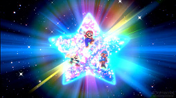 物語はもちろん,各シーンの構図や演出,そして雰囲気も同じだ。グラフィックスや表現が向上した分,城に突き刺さった巨大な剣はさらに存在感を放ち,そして物語のキーとなるスターピースもその輝きを増してマリオたちの前に現れる。