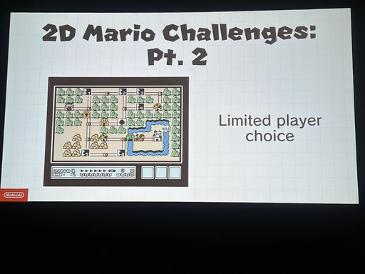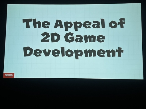そしてあるとき「こんなにも長く新作の2Dマリオが出ていないと,マリオは2Dから3Dに置き換わったと思われてもおかしくない」ということにあらためて気づく。そこで2Dゲーム制作の魅力について 話をしなければと考えたのが本セッションにつながっているそうだ。