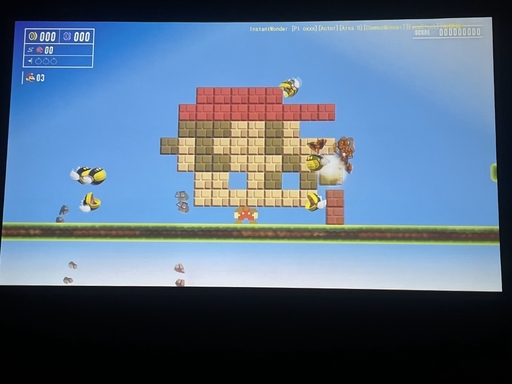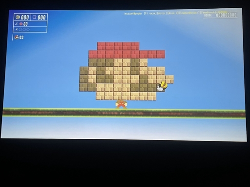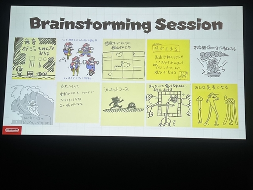 もうひとつ不採用だったものの例として,「マリオの顔が巨大なブロックで作られたものになり,ガシガシにブロックを食べられないように進む」というアイデアが紹介された。