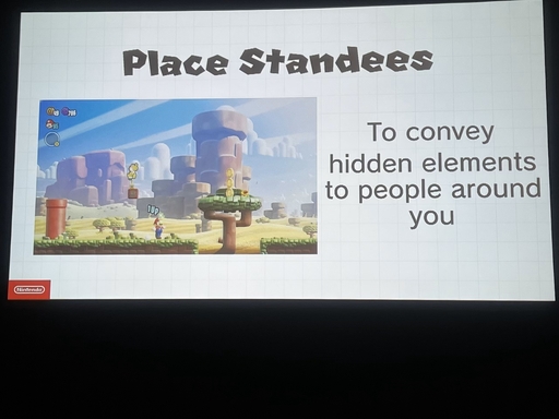 マリオワンダーの開発においては,チーム全体でアイデアを出し合ったことが大きいが,これはゲームの要素を作るためだけではない。ひとりひとりのゲーム制作への経験値が上がり,自分が声を上げられる(アイデアを出せる)ことでモチベーションが高まり,意見を交わし合うことでチームの一体感が向上する。それぞれの個性や力をいかに制作に反映するかが重要で,チーム運営自体もそれを目的に行うべきだと手塚氏は語った。