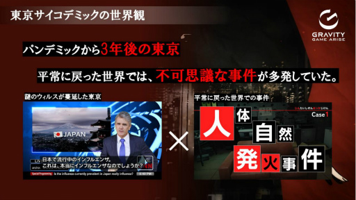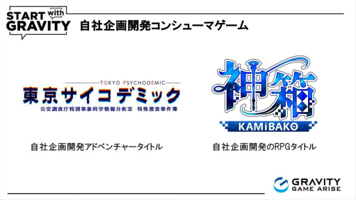 さらに,現在は「START with GRAVITY」プロジェクトを掲げ,とくにコンシューマゲームおよびインディーゲーム事業に注力しているとのこと。「東京サイコデミック」と「神箱」は,こうした事業における自社企画開発コンシューマタイトルの第1弾にあたる。