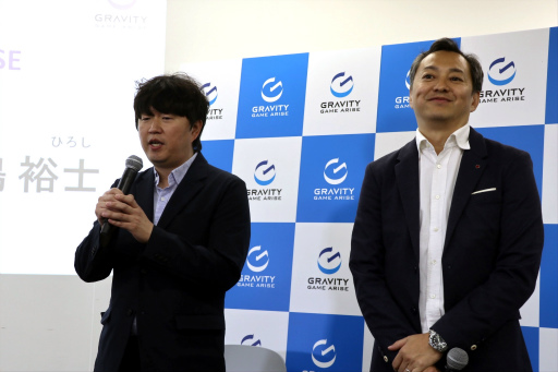 イベントの冒頭,グラビティゲームアライズ 取締役の五嶋裕士氏および朴 賢駿氏による会社の紹介が行われた。