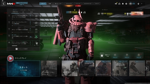 こちらも主にIPホルダーとの話し合いを通じて決まったものです。パートナーであるガンダム側とのコミュニケーションは非常にスムーズで,「CoD: MW3」はさまざまな要素が入ったコンテンツであり,その中で,一目でインパクトを与え,ガンダムと認識してもらうためには,モビルスーツが最適だろうという判断でした。