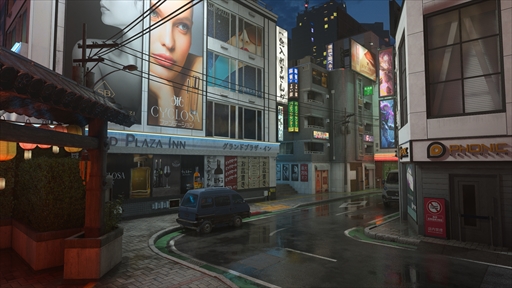 「CoD: MW3」が競技性の伴うシューター作品である以上,視認性という問題は,常につきまとう問題です。そのため,どうしても日中のマップになることが多いのですが,ネオンサインや電光掲示板の照明が多く,夜間でも迷子にならない東京は,夜間マップを制作するにあたり,うってつけのチャンスでした。