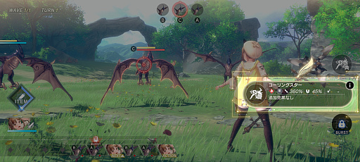 行動順にはバーストスキルを使用できるほか,攻撃力などが上がる「効果パネル」が配置されており,順番をうまく制御して,効果パネルをどう獲得していくかが,バトルのカギを握る。頭をひねった戦略的なバトルが楽しめる。