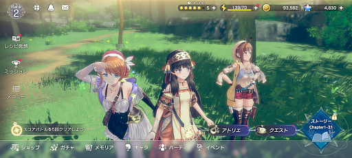 「レスレリアーナのアトリエ」のゲームサイクルは,メインストーリーを進めてコンテンツを開放していき,クエストでのキャラクター育成や素材集め,アトリエでの錬金調合でアイテムを製作して装備を整えていくというものだ。クエストはスタミナを消費してこなしていくというスタイルとなっている。