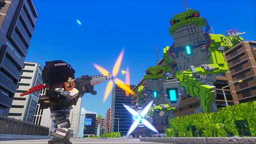 デジボク地球防衛軍2は,巨大な敵と戦う「地球防衛軍」シリーズの流れを汲む作品だ。ゲーム内には,歴代作品のキャラクターが「ブラザー」「シスター」として,ボクセルスタイルのアートワークで登場。謎の敵「ガイアーク」から地球を守るために戦う。