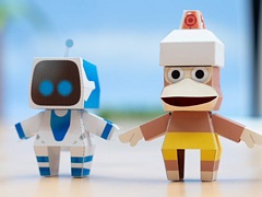 かわいらしい「アストロボット」のアストロと,「サルゲッチュ」のピポサルを作れる。ペーパークラフト展開図を公開中