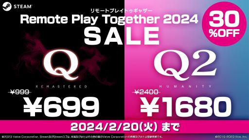 さらに、Steam にて2月20日(火)まで『Q REMASTERED』『Q2 HUMANITY』がそれぞれ30%OFF!!