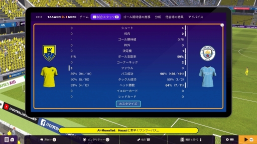 私としては,試合を数多く重ねていくゲイムなんで,変にグラフィックスに凝ってロード時間取られるよりもこのクオリティで十分です。というか昔からの「FM」シリーズの,ホワイトボードに○で表現される試合画面で私は十分なので,選手がしっかりと描かれる今作に(ちょっと前からこれくらいのクオリティだったかどうかは知らんけど)むしろビックリしたまであります。