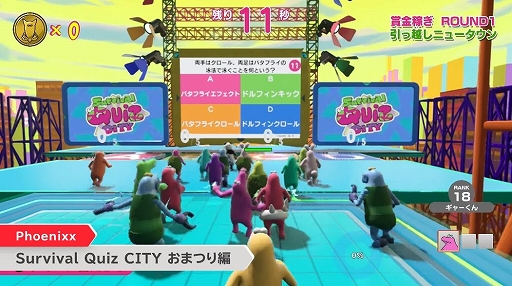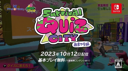 謎の生物を操作するバトロワ系クイズゲームがSwitchに登場。「Survival Quiz CITY おまつり編」が10月12日に基本プレイ無料で配信決定