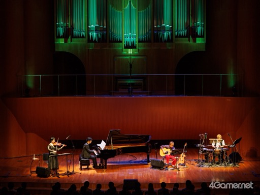 続く2曲は,声優の杉田智和さんが原作を手がけ,2013年にリリースされた「月英学園 -kou-」(PC / PlayStation Vita)の楽曲。「そして月は輝く」の原曲は,声優・歌手の早見沙織さんが歌うボーカル曲だが,今回は水谷美月さんのヴァイオリンをフィーチャーしたインストバージョンで披露された。またラストバトルの楽曲である「天地神人」の原曲は,成田 勤氏が編曲を手がけていたことも紹介された。