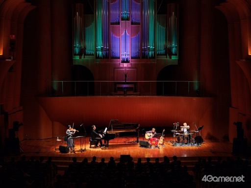 第1部の終盤には,ゲストの古代氏が自身の手がけた「眠らずの戦場」「フィルモア」「すばらしき新世界」の3曲を披露。演奏前のトークにて,古代氏はライブで演奏した経験は多数あるものの,こうしてホールで生のピアノを演奏するのは幼少期の発表会以来で,かなり緊張していると語った。また,当時ピアノを教えてくれた母親が非常に厳格だったという思い出や,ゲーム音楽にハマったことから作曲家を志したといったエピソードも紹介された。