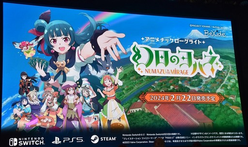 この日,まず紹介されたのが2024年2月に発売予定の新作「幻日のヨハネ -NUMAZU in the MIRAGE-」(PC / PS5 / Nintendo Switch)だ。謎の鏡の中に吸い込まれ,現実のヌマヅがそっくり反転した「裏ヌマヅ」へとやってきたヨハネ。裏ヌマヅはカードの力で魔法が使える不思議な世界で,ヨハネは憧れの魔法使いデビューが叶って大喜び。