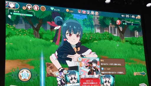 カードには具体的な効果が書かれており,高槻さんは相手のHPをよく見ながらカードを選択。敵にターンを回さず倒し切り,見事なゲームの腕前を披露した。