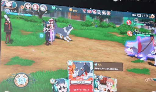 いざというときは仲間を呼べるのも本作の魅力の1つだ。謎に包まれた強敵「ナイトウィキッド」と遭遇した高槻さんは,ダイヤとリコ,そしてライラプスを召喚し,見事に戦闘に勝利していた。試遊の制限時間以内にボスを倒した高槻さんのプレイぶりに,会場からは大きな拍手が沸き起こった。
