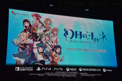 続いて行われたのが,2023年11月16日に発売が予定されている2Dアクションゲーム「幻日のヨハネ -BLAZE in the DEEPBLUE-」(PC / PS5 / PS4 / Xbox Series X|S / Xbox One / Nintendo Switch)の情報公開だ。プレイヤーが主人公のヨハネとなって相棒のライラプスと共に謎の海底ダンジョンに消えた仲間たちを探し求めるストーリーが展開される。