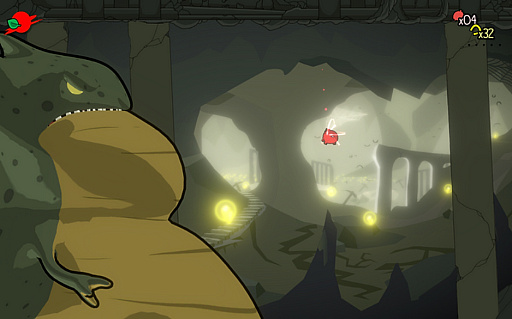 ボタンを押し続けると上昇していくので,敵や障害物をたやすく回避できる。しかし,ゲーム画面のフレームや特定の障害物にぶつかると即座にゲームオーバーとなる。そのため,適度にボタンから指を離し下降させなければならないので,操作には高い集中力が必要になるのだ。