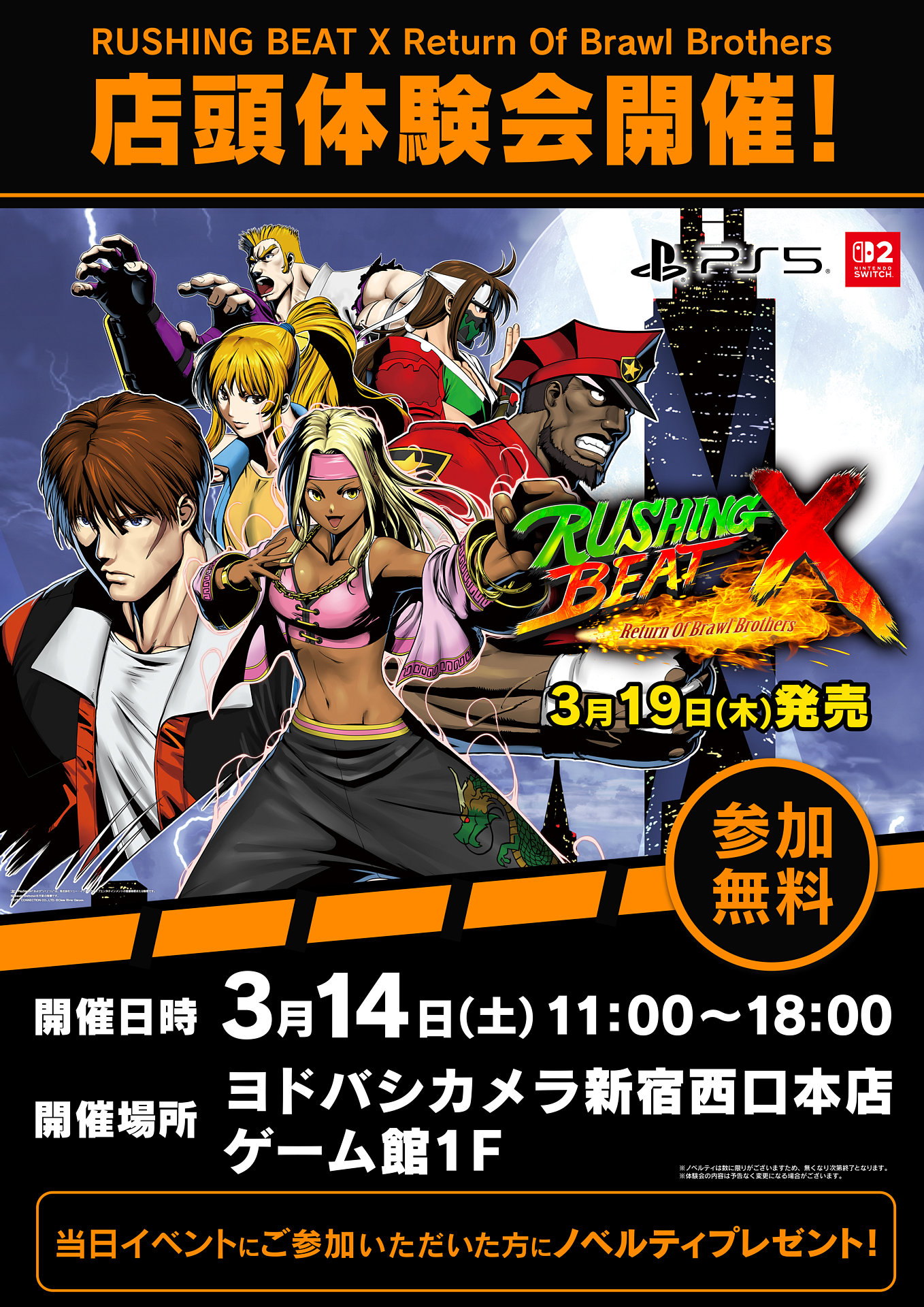 「RUSHING BEAT X」,店頭体験会を3月14日にヨドバシカメラ新宿西口本店で開催。参加者にはグッズをプレゼント
