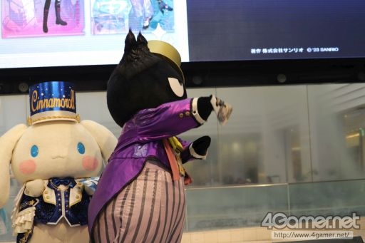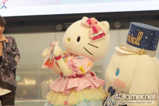 概要を一通り振り返ったところで,出演者の呼びかけに答える形でスペシャルゲストのハローキティ,シナモロール,バッドばつ丸が登場し,会場では大きな拍手と歓声が上がりました。