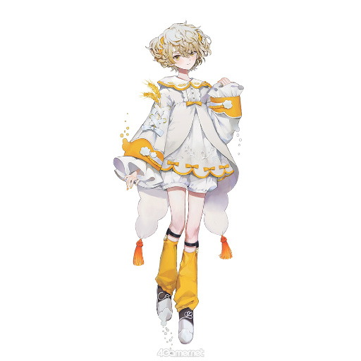 「小麦粉の精という,こぎみゅんの吹き飛ばされて粉になっちゃいそうな“儚いかわいさ”をデザインに落とし込みました。あと,服の後ろがペットのエビちゃんのシルエットになっていたり,靴の飾りはこぎみゅんのサインがモチーフになっていたりしています」